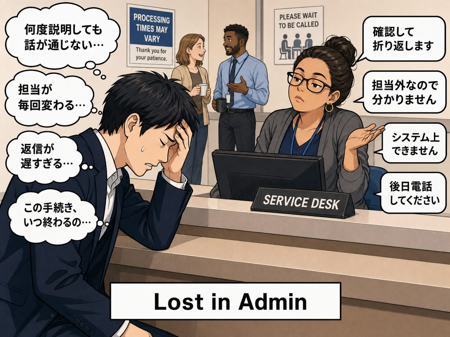 一方で、こちらのアドミン系では、頑張っても給与や評価に直結しにくい、評価されないサービスには力を入れない、そもそも仕事の基準が共有されていない、といった理由で対応の質が下がっているのかもしれません。日本では、少なくとも以前は、どの部署にもある程度の奉仕の精神や「良い仕事をしよう」という意識があったように思います。ただ、その考え方は今の世代には通じにくくなっているのも事実です。日本でも事務系職員に対する正当な評価や報酬の仕組みを整えなければ、将来的には同じような方向に進む可能性はあると思います。